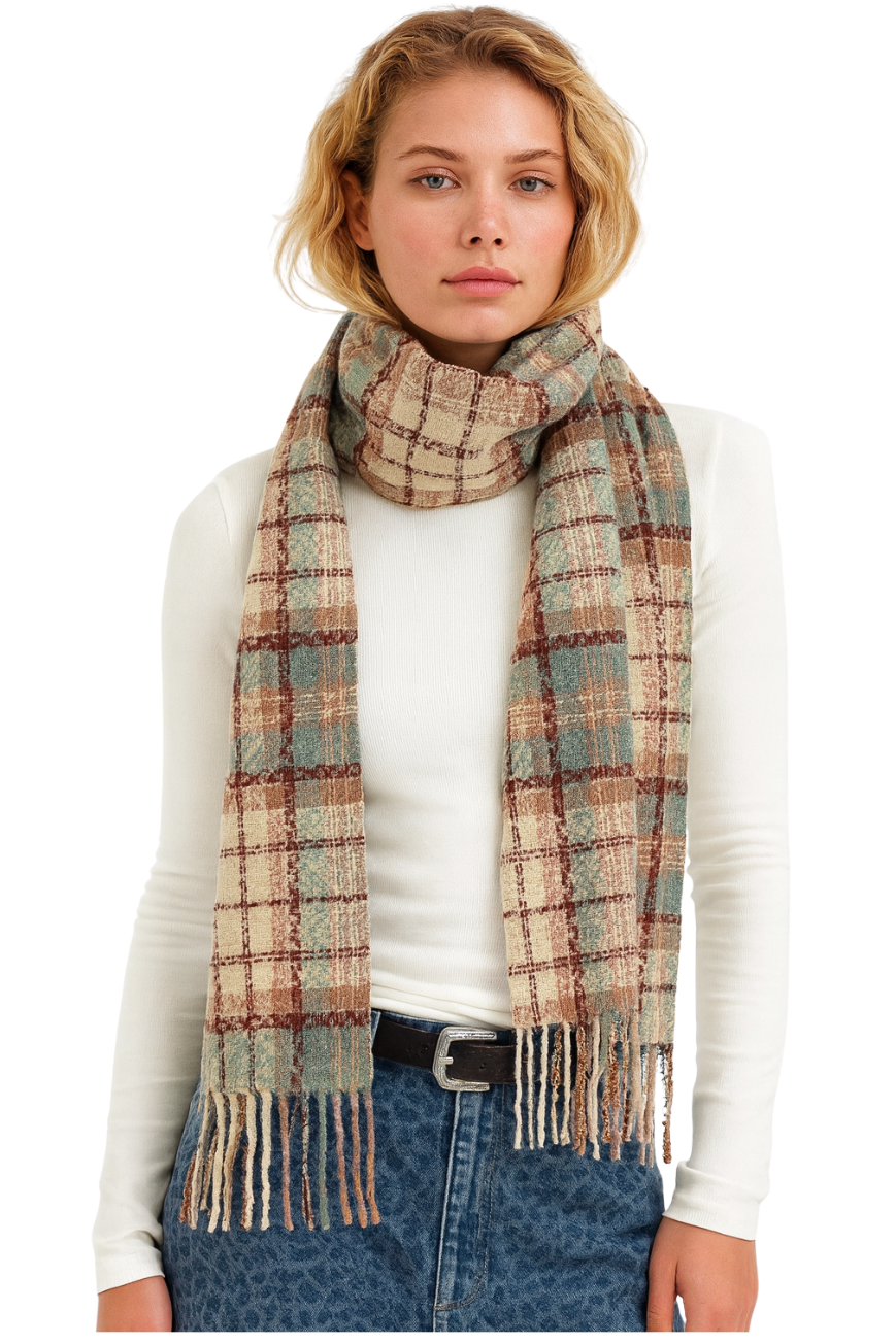 Wrap yourself in cozy charm with our Soft Season Plaid Scarf — where timeless pattern meets cloud-like comfort. Designed in a classic plaid with warm tones of cream, mocha, and sage green, this scarf instantly elevates any outfit with a vintage, yet modern touch.