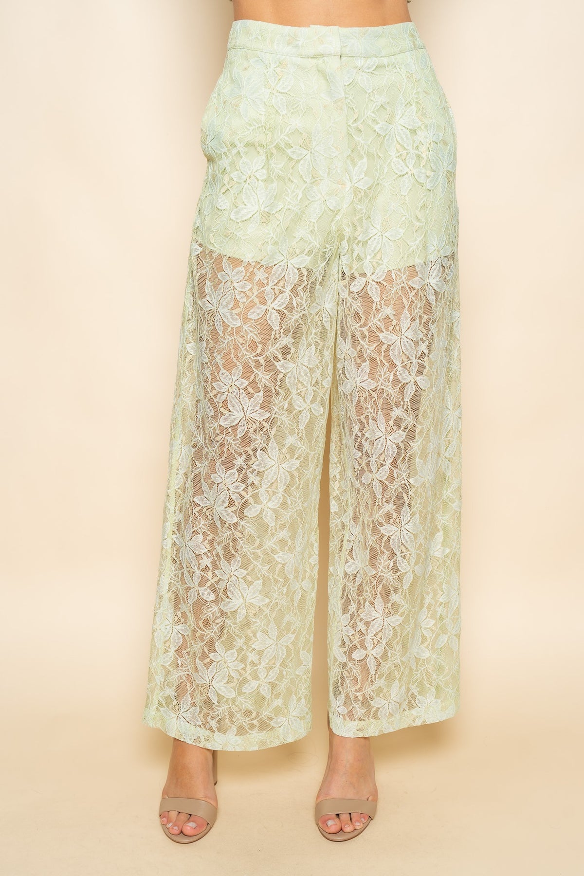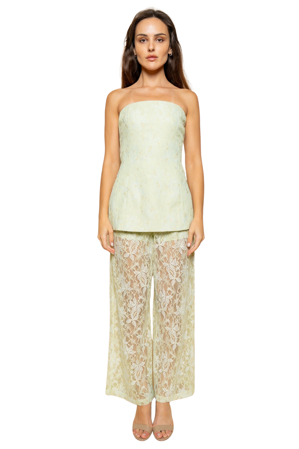 The Mint Lace Affair Set is a fresh, feminine statement made for elevated summer moments. This two-piece features a strapless lace top with a clean, structured fit paired with matching high-waisted lace pants designed with a flattering wide-leg silhouette. Crafted in a soft mint hue with intricate floral lace detailing, it strikes the perfect balance between romantic and modern.
