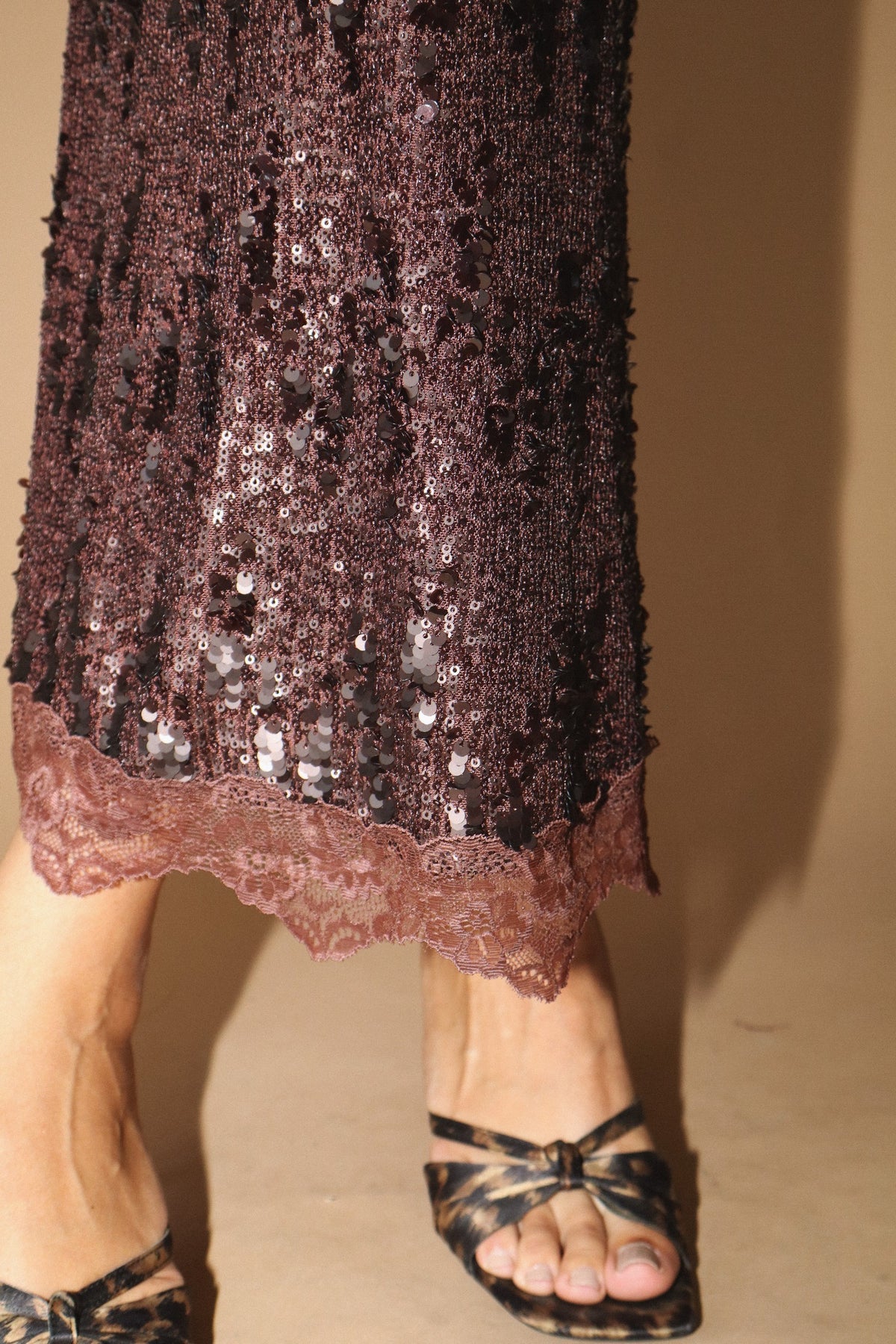 The kind of dress that doesn’t ask for attention—it demands it. The Midnight in Milan is a rich espresso-toned sequin midi that hugs your curves and sparkles with every step. Strapless silhouette, stretch lining for comfort, and delicate lace trim at the hem. From candlelit dinners to holiday soirees, this one is for the moments you’ll never forget.