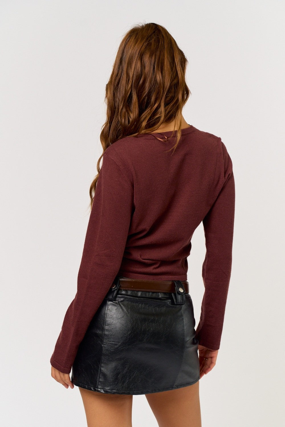 An understated essential with a cheeky twist. The Olive You Long Sleeve is a fitted, crewneck top in a rich burgundy knit, finished with a dainty embroidered olive skewer detail at the chest — the perfect garnish for your fall wardrobe. Whether you're headed out for tapas or keeping it casual, this top adds flavor to any look. For the girls who love a martini moment — dirty, obviously.