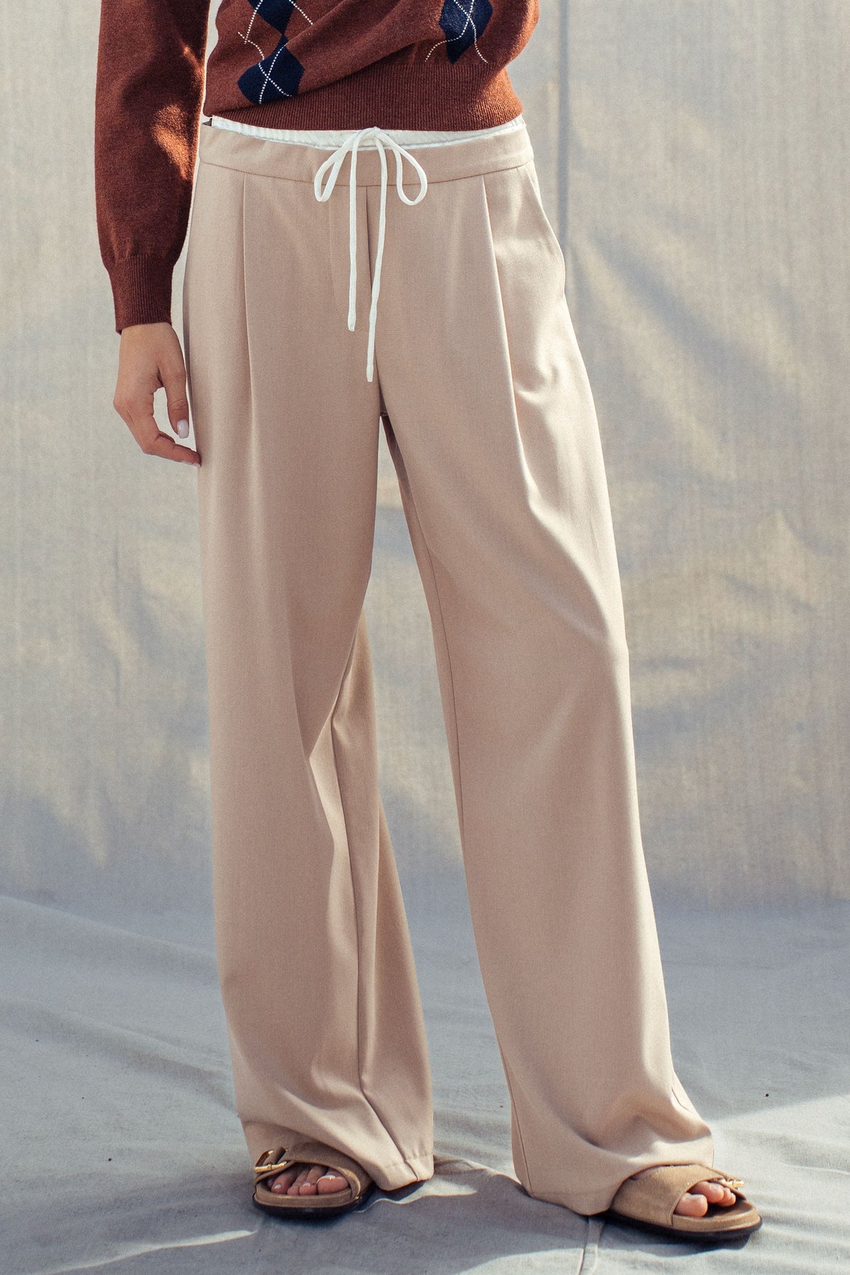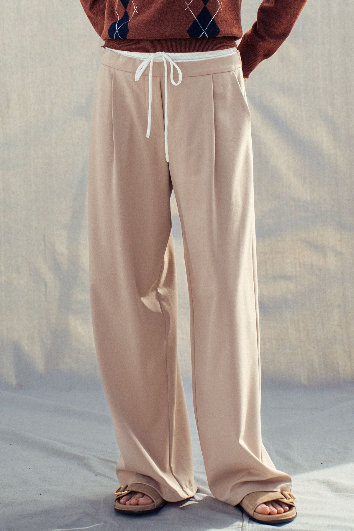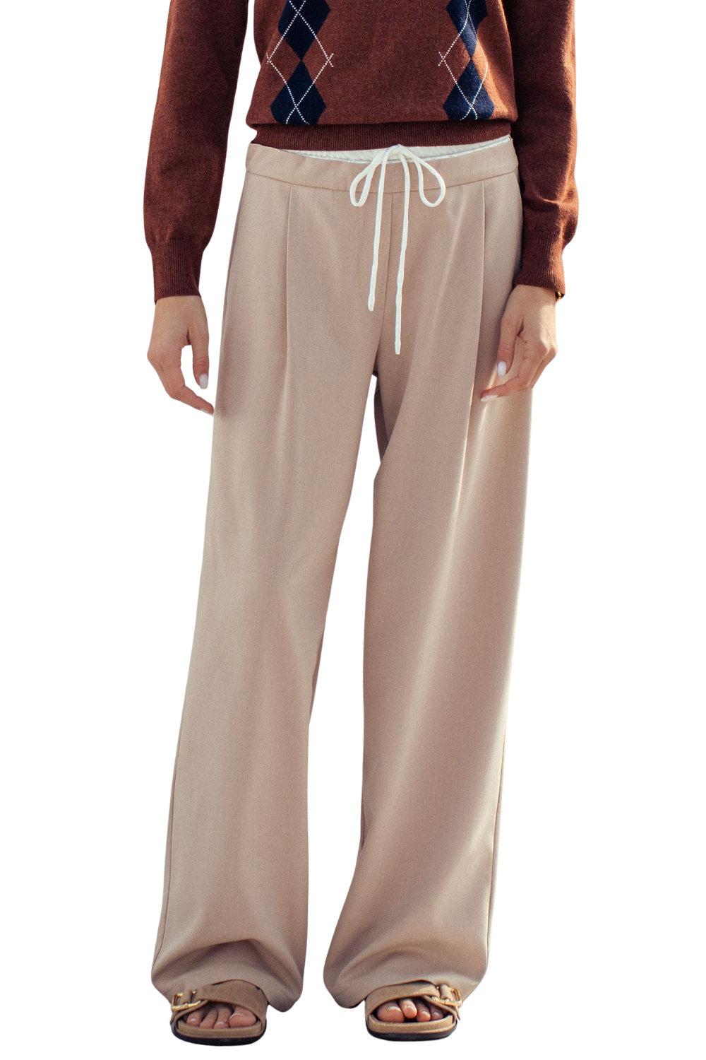 Effortless elegance meets everyday comfort. The Café Comfy Pants feature a relaxed wide-leg silhouette, subtle front pleating, and a crisp white drawstring waistband for a polished yet laid-back vibe. Crafted in a soft beige tone that pairs with everything, these are your go-to trousers for travel days, casual Fridays, or cozy city strolls.