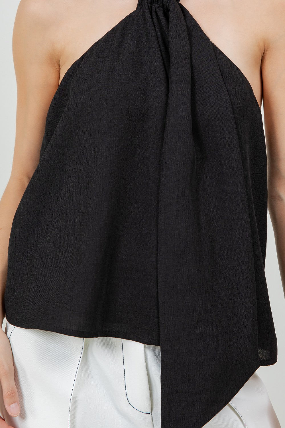 • Twisted gathered halter knot neckline