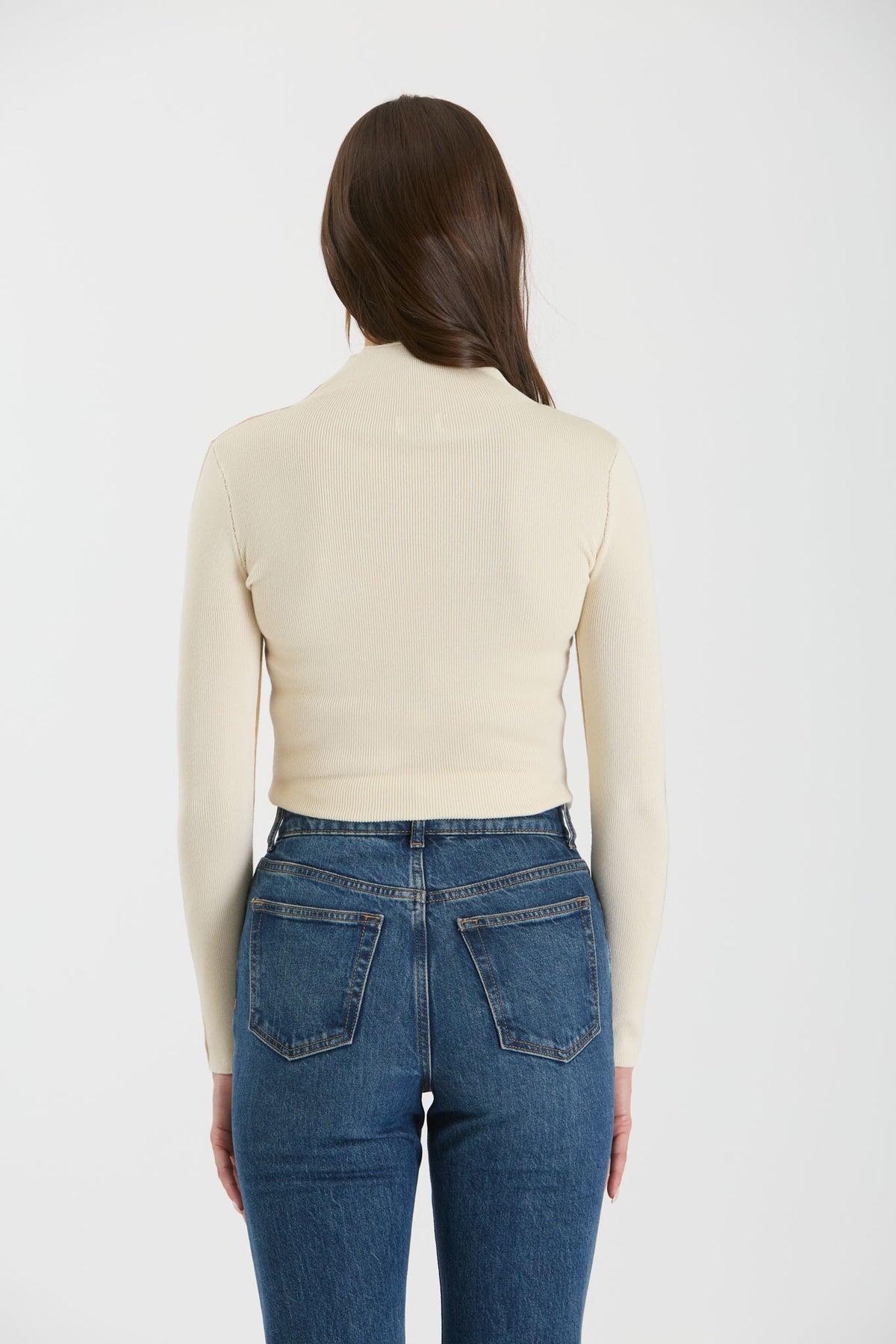 The Two-Tone Mock Neck Top is a sleek and sculpting wardrobe staple made to flatter from every angle. With its bold side paneling and snug ribbed knit, this top offers a modern twist on minimalism. Pair it with your favorite denim for an effortless off-duty look or layer it under a blazer to make a statement at work.