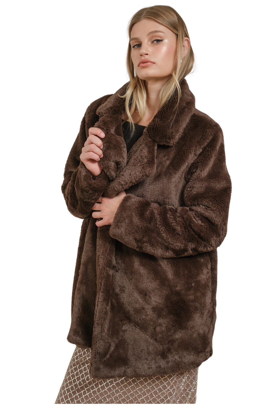 Wrap yourself in warmth and elegance with our Cocoa Luxe Faux Fur Coat. Designed in a rich chocolate brown tone, this ultra-soft piece delivers timeless glamour with a modern edge. The plush faux fur texture makes it the perfect layer for chilly nights or dressing up a minimalist outfit. With its oversized collar and relaxed fit, it's cozy, chic, and made to turn heads.