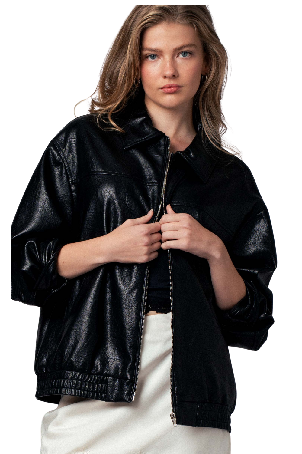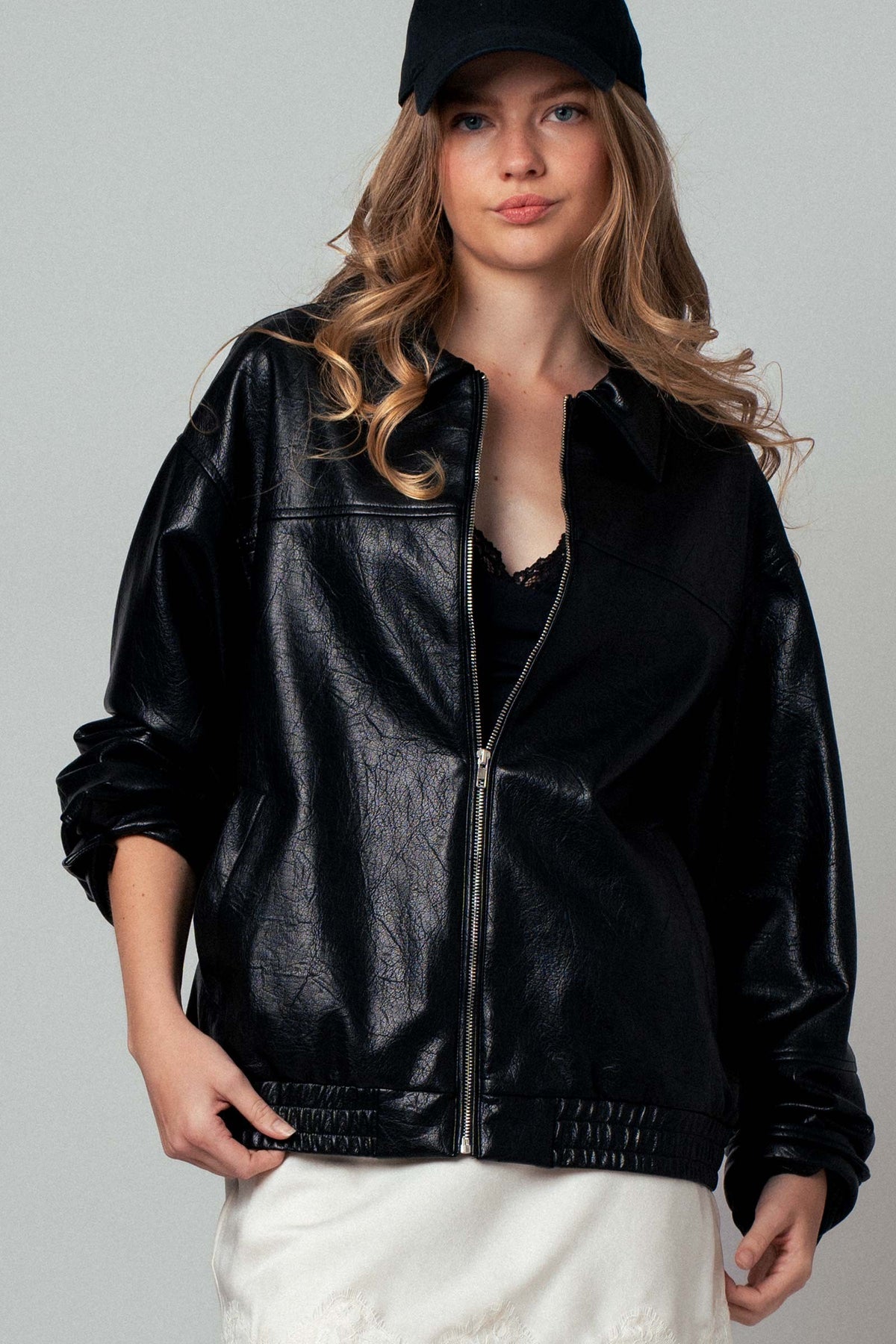 Effortlessly cool and undeniably timeless, the Berlin Vegan Leather Jacket is your go-to layer for an elevated everyday look. Crafted in smooth faux leather with a relaxed fit and zip-front closure, this minimalist piece delivers maximum style with minimal effort.